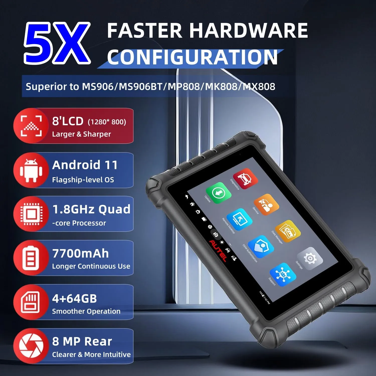 - Enhanced Hardware: Autel MX900-TS is equipped with Android 11.0 OS, ROCKCHIP RK3566 CPU, 4G RAM & 64G ROM, 5X Faster, 8-inch LCD capacitive touchscreen and 8 MP Rear Camera.