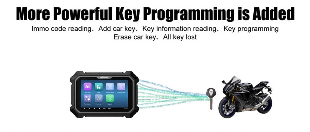 ✔️ IMMO key programming – Supports key learning/programming for many motorcycle brands (may require optional adapters for some models).