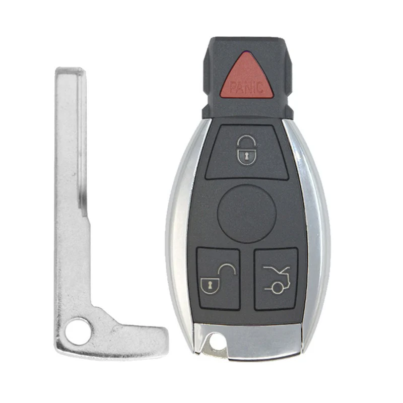 • 4‑button remote PCB with aftermarket shell suitable for many Mercedes vehicles.