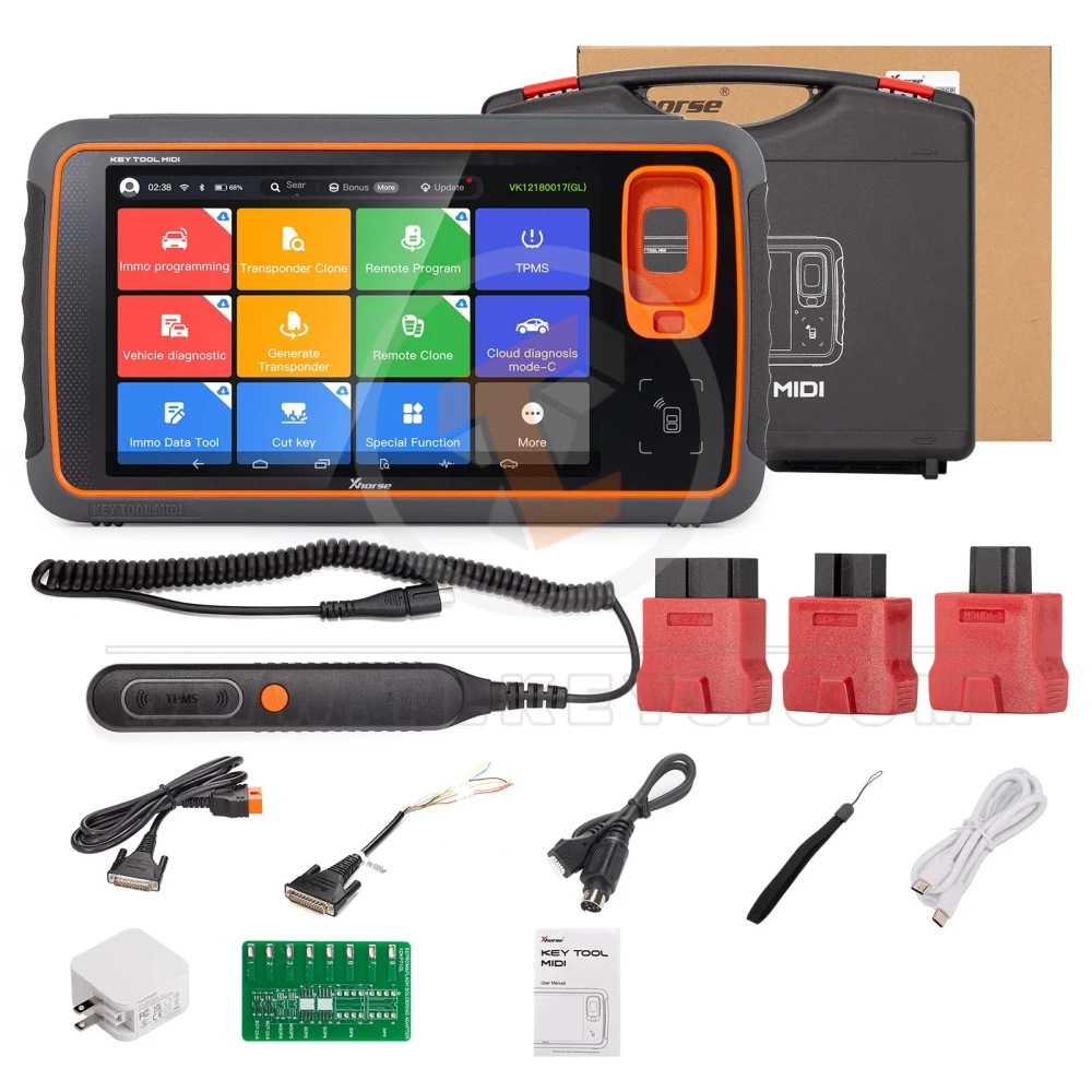 The Xhorse Key Tool MIDI Advanced Version is a professional automotive key programming and diagnostics device designed mainly for locksmiths and vehicle technicians. It combines immobilizer (IMMO) programming, remote key and transponder cloning, and TPMS functions into a single handheld unit with a usable touchscreen interface.